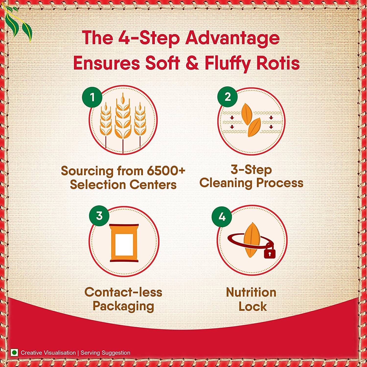 • The essential nutrition remains locked in the whole wheat atta which helps in easy digestion and supporting immunity