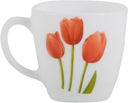 LAOPALA Pack of 6 Opalware Quadra Tulip Garden Coffee Cups 125 ML Set Of 6 (White)