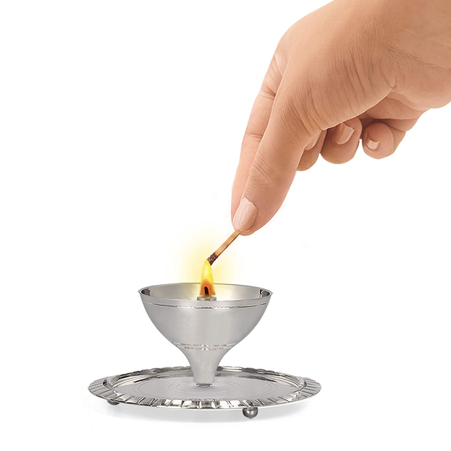 Borosil Akhand Diya Nickel-Table Akhand Diya-(Large, Nickel)