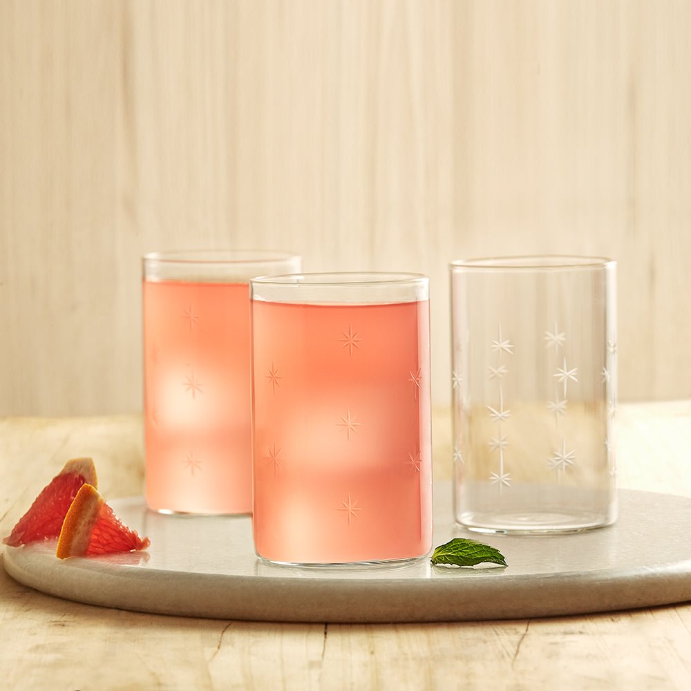 The star motif etched into the glass can add a dash of spark to any occasion, or even to just brighten your day! This 100% borosilicate glass will retain its sparkle after years of repeated use and is a perfect addition to your glass collection! The glasses are microwave and freezer safe, making them convenient along with being so incredibly beautiful.