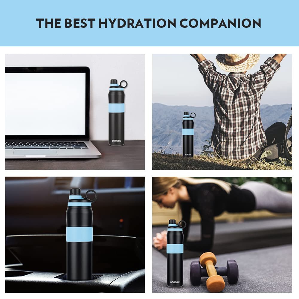 Borosil Hydra Thirst Burst Fuchsia Water Bottle, Stainless Steel Water Bottles, Vacuum Insulated Flask Bottles, 800 ml, Black & Pink