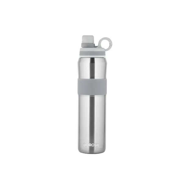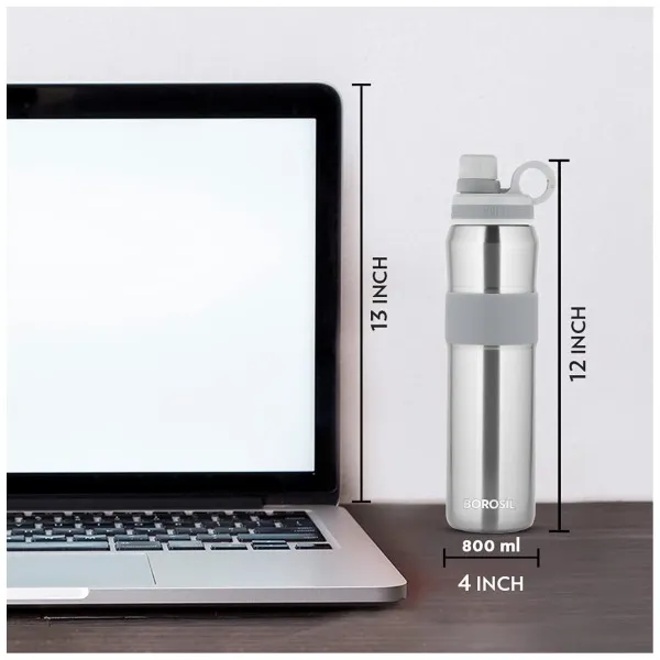 Borosil Hydra Thirst Burst Steel Water Bottle, Stainless Steel Water Bottles, Vacuum Insulated Flask Bottles, 800 ml, Grey Steel