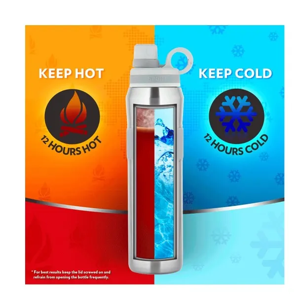 • EASY TO CARRY & USE, TWIST-TO-OPEN CAP -Pack your leak-proof, spill-proof and sweat-proof water bottle in your gym bag, travel backpack or purse. For your convenience, your stainless steel water bottle has a twist -to-open cap that makes it extremely convenient to drink from. So whether you're outdoors or at your desk, our Hydra water bottles are the perfect hydration companion. For maximum effectiveness, before filling the flask with the beverage, precondition by filling hot water or cold water/ice. For optimal temperature maintenance, fill the bottle completely.