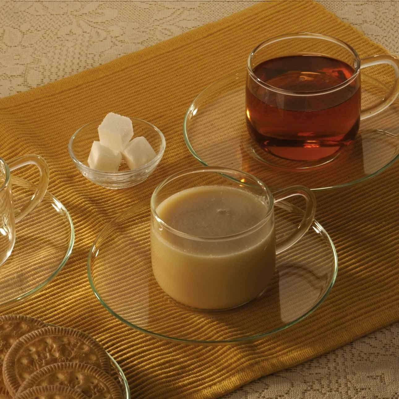 Made of glass, this piccolo cup and saucer set proves handy when you need to warm or serve cool beverages. Place it in a microwave, oven or refrigerator for a few minutes and they are ready to serve. This Borosil 6 set piccolo cup and saucer is dishwasher safe, allowing you to clean it with ease without having to worry about scratches. You also do not have to worry it leeching harmful chemicals into your beverages even after repeated use. This glass cup and saucer set makes for a versatile and stylish addition to your home.