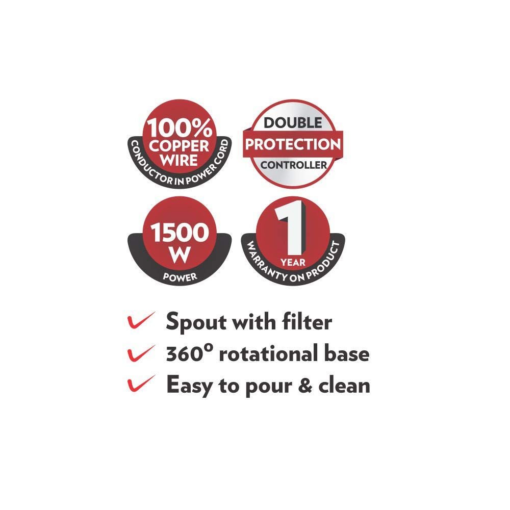 - Double Protection Controller available in Rio electric kettle