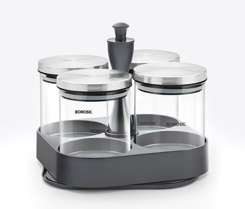 The Spin N Store unit is a revolutionary patented design by Borosil. It has two layers, both of which spin, allowing you to access the storage jars on each level with ease. The smooth mechanism revolves with the touch of a hand. The unit takes up very little space on your shelf or kitchen counter, allowing for efficient, convenient and easy storage. As always, all our products are designed to perform beautifully, just like you - and the Spin N Store is the perfect example of that!