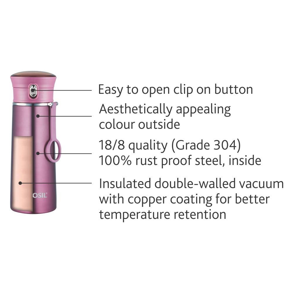- Double-walled vacuum insulated with copper coating for better temperature retention