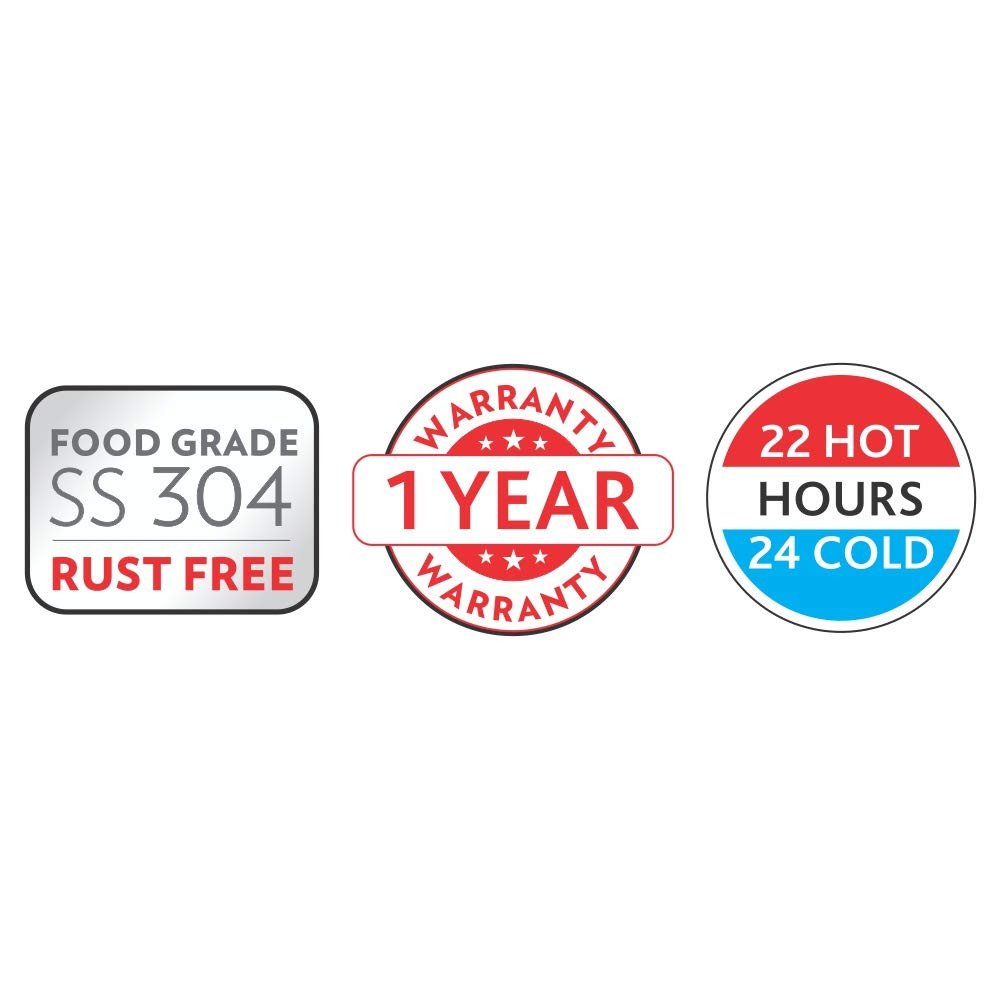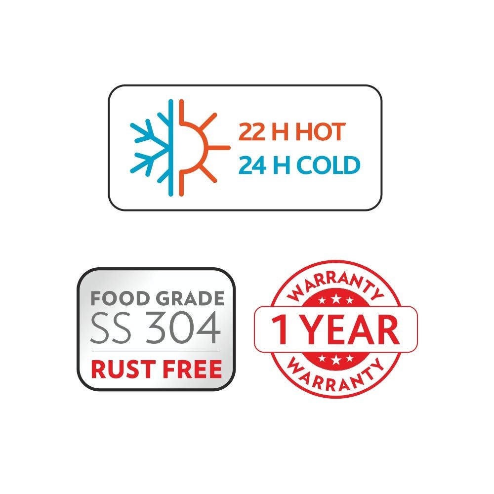 • Insulation type: Double wall; Temperature retention: Yes (Keeps liquid hot/cold upto 20 Hours Hot and 24 Hrs Cold); Leak proof: No. Clean with mild detergents only