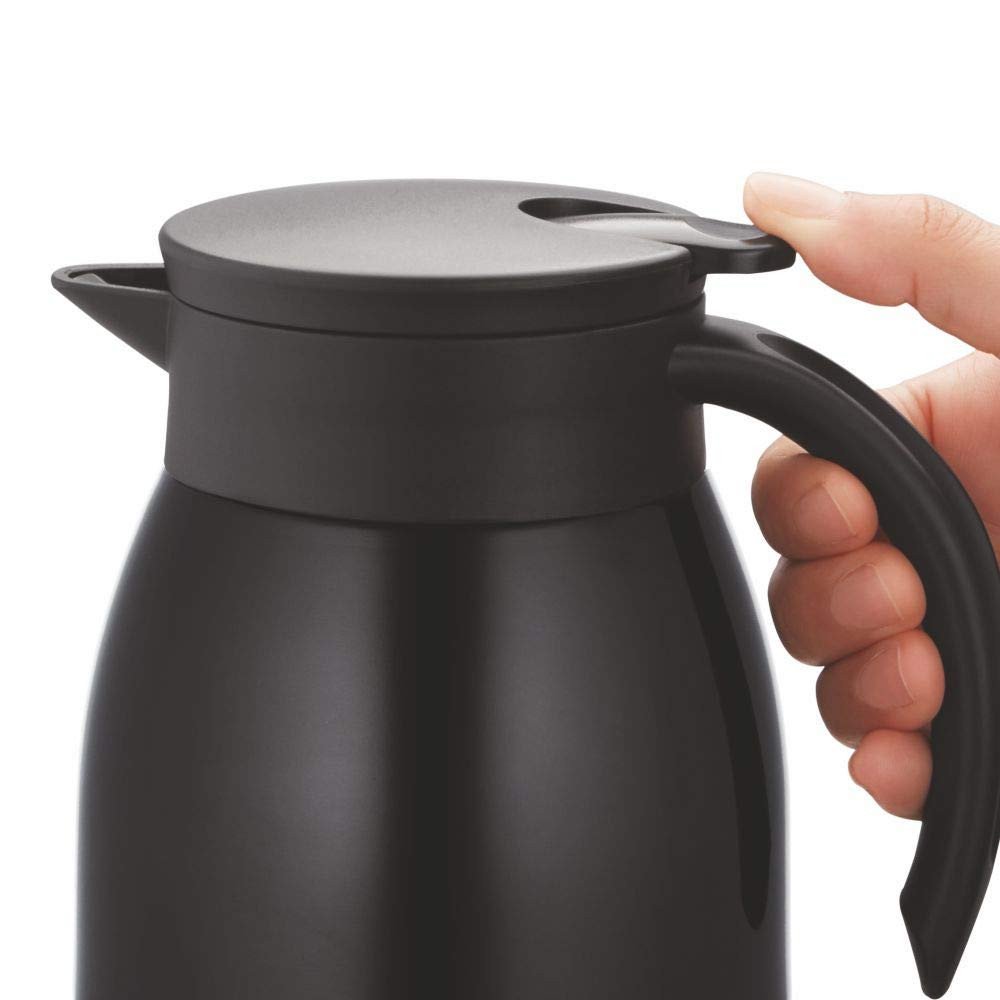 - Pour spout opens easily with push button ease, making one handed pouring simple