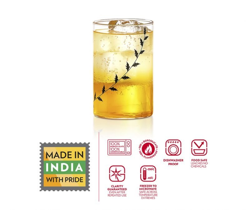 - Borosil drinking glasses are extreme temperature proof, and can be used in the microwave to boil water / milk, or used in the freezer to quickly chill a drink.