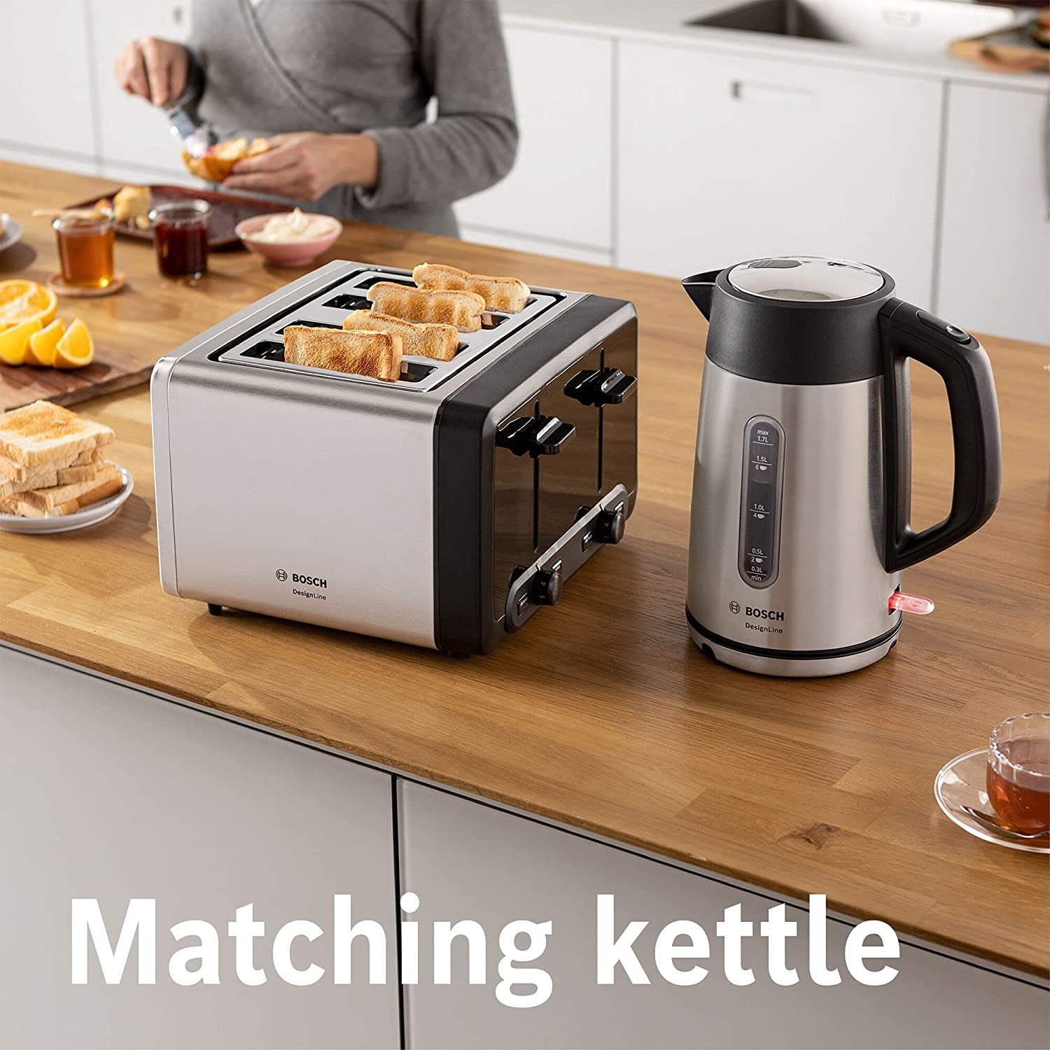Bosch Design Line TAT4P440GB Stainless Steel Toaster, 4 Slot - Stainless Steel Bosch Design Line Plus TAT4P443GB Stainless Steel 4 Slot Toaster - Black