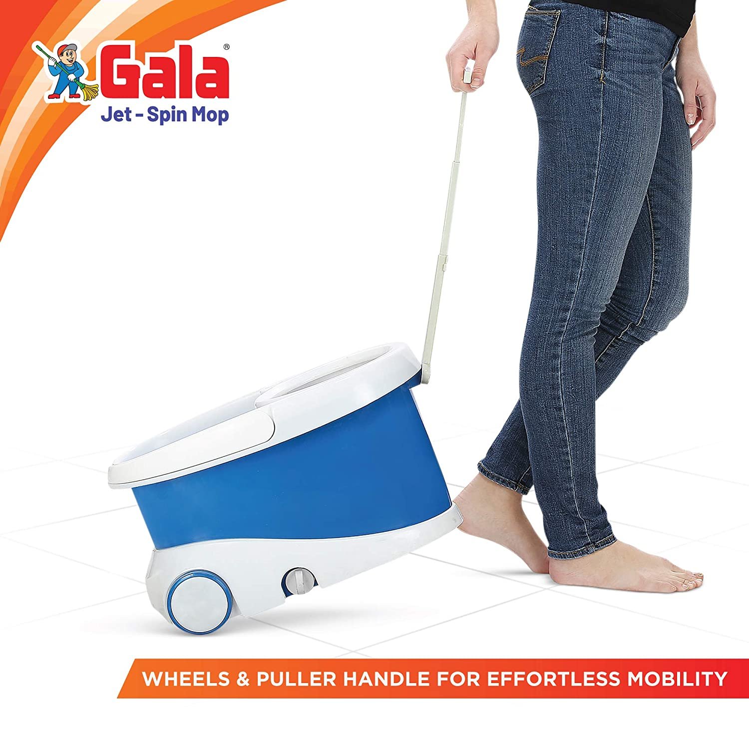 360-degree cleaning, reaches under furniture and hard to reach areas and provide effective cleaning, A longer and sturdy puller handle helps to carry the bucket with ease from one place to another, No Spills, No Shock And No Damage To Floors, Bucket Material:-Plastic, And Plastic Spinner, Handle Material:- Stainless Steel, Head Material: Microfiber Fabric, Microfiber mop head removes/ absorbs tough dirt and filth. Its reusable, machine washable & eco-friendly.