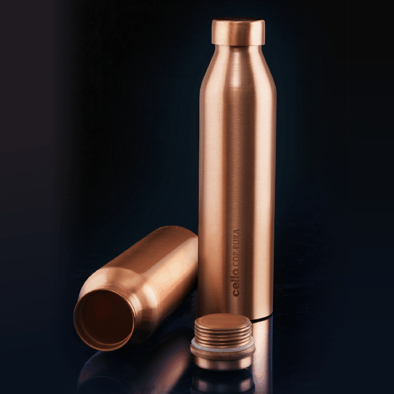The Cello Copper Water Bottle and 2 Glass Moksh Gift Set are perfect for anyone who values health and wellness. Made from high-quality copper, the water bottle has natural anti-bacterial properties that make it perfect for storing and drinking water. Copper also helps to regulate the body's pH balance, aiding in digestion and immunity. The set includes two glass mugs that are perfect for drinking tea, coffee, or any other beverage. The glasses are made from high-quality, non-toxic glass, making them safe for daily use. The set comes in an elegant packaging that makes it a perfect gift for loved ones.