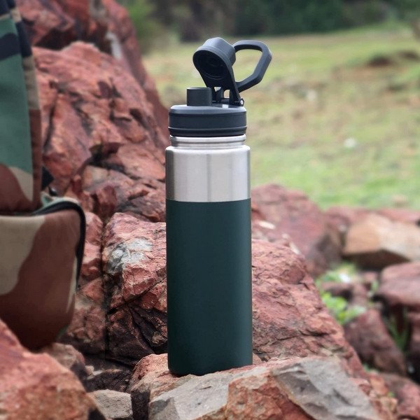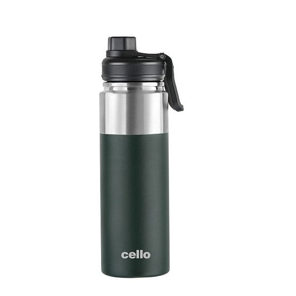 Pre-condition bottle with hot water if used for hot beverages and cold water if used for cold. Cello Duro sprint features a rubber grip opening for easy opening. Material: Stainless Steel, Capacity: 850ml Color: Green