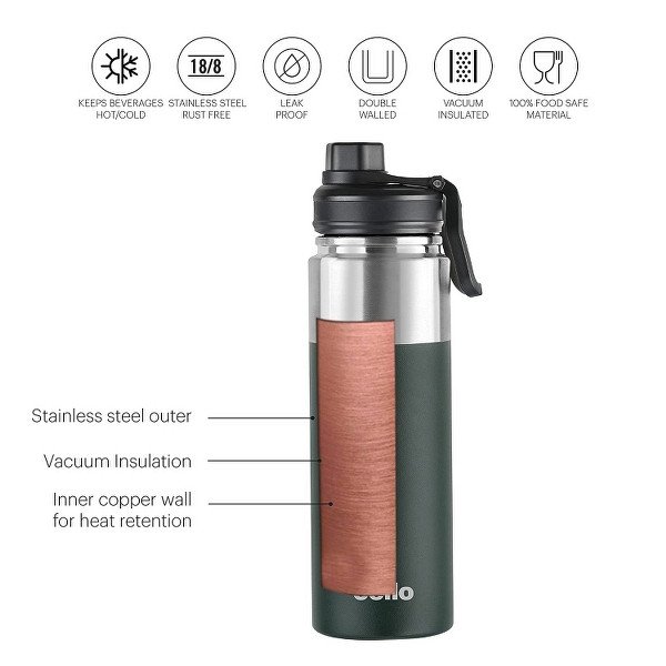 Insulation Type: Cello Duro tuff steel Sprint Flask features double-walled vacuum insulation with an inner copper coating that retains the temperature, keeping beverages hot or cold for a prolonged period of time.