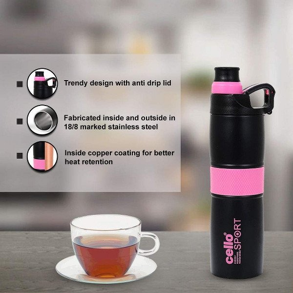 Insulation Type: Cello Force water Flask features double-walled vacuum insulation with an inner copper coating that retains the temperature, keeping beverages hot or cold for a prolonged period of time.