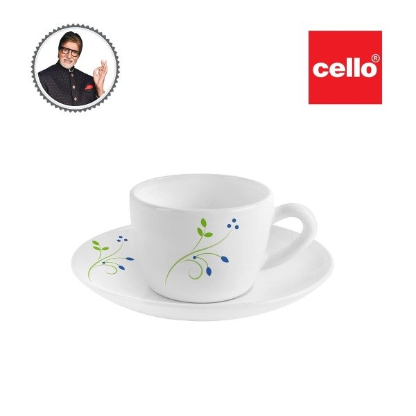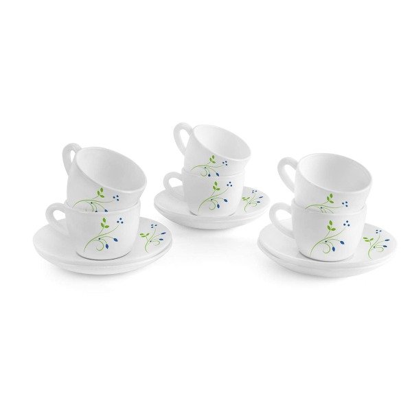 Looking for a durable and stylish cup and saucer set? Look no further than the Cello Opalware Queen Cup and Saucer Set. This set includes 12 pieces and features a beautiful tropical lagoon design on a white background.