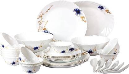 Package Contents: 6-Pieces Full Plate, 6-Pieces Quarter Plate, 6-Pieces Veg Bowl (190ml), 2-Pieces Medium Serving Bowl (1.37 Litres), 1-Piece Oval Platter, 6-Pieces Soup Bowl (290ml), 6-Pieces Soup Spoons, 1-Pieces Small Serving Bowl (790ml) and 2-Pieces Multi Utility Bowl (510ml)