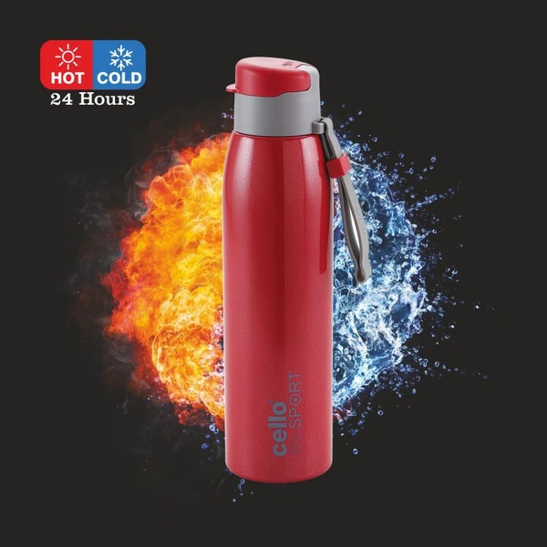 Cello Stainless Steel Double Walled Water Bottle, Hot and Cold (Ener-G) 600 ml