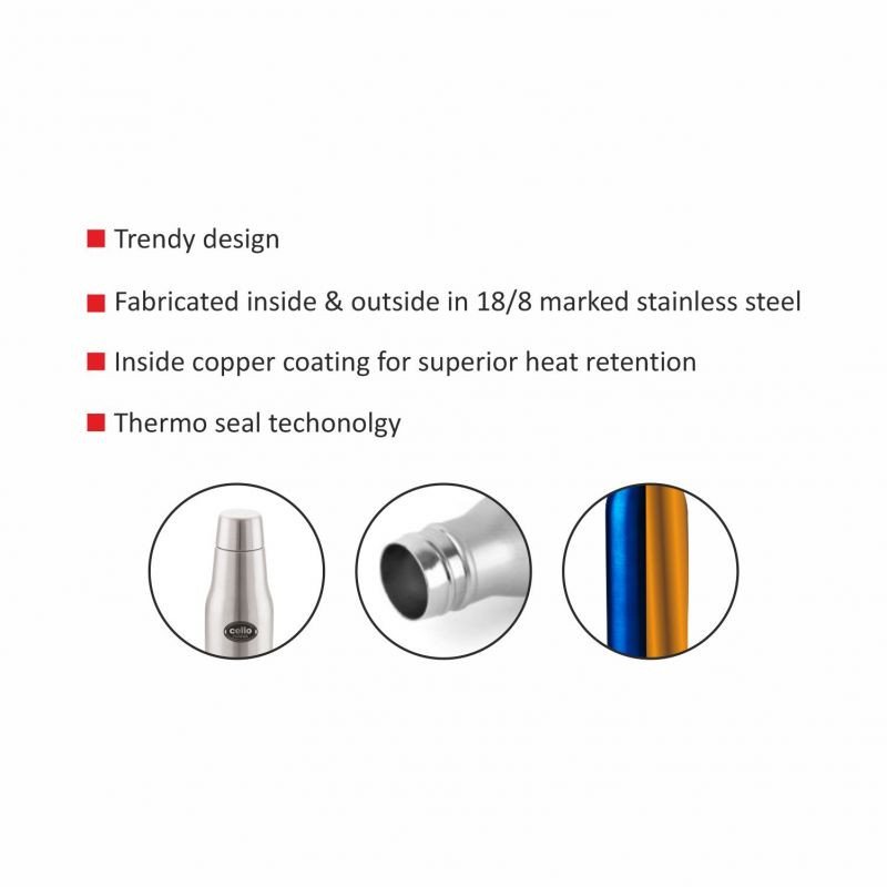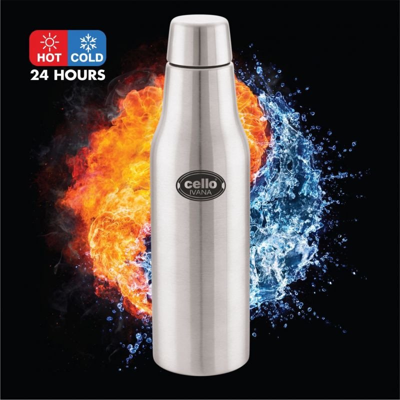 Cello Stainless Steel Double Walled Water Bottle, Hot and Cold (Ivana) 350ml