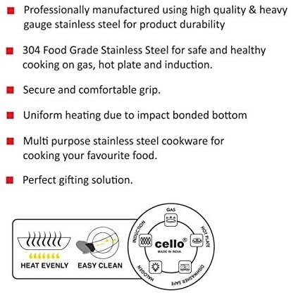 • Uniform heating due to impact bonded bottom, Multipurpose stainless steel cookware for cooking your favourite food, Perfect gifting solution