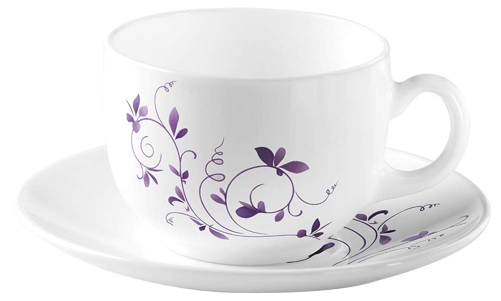 Diva from La Opala Dazzle Purple Opalware Cup & Saucer Set Iris, 6 pcs, White