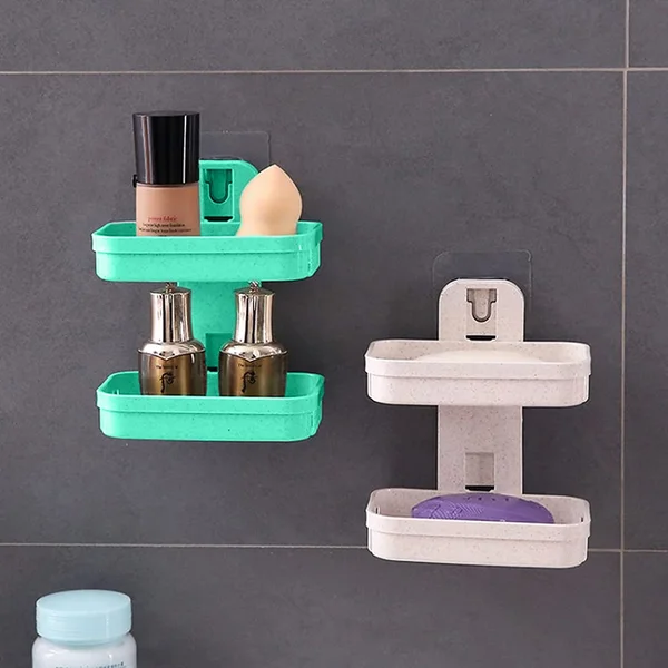 Double Layer Soap Stand Dish For Bathroom Kitchen Sink Magic Stickers Wall Mounted Soap Dish Holder