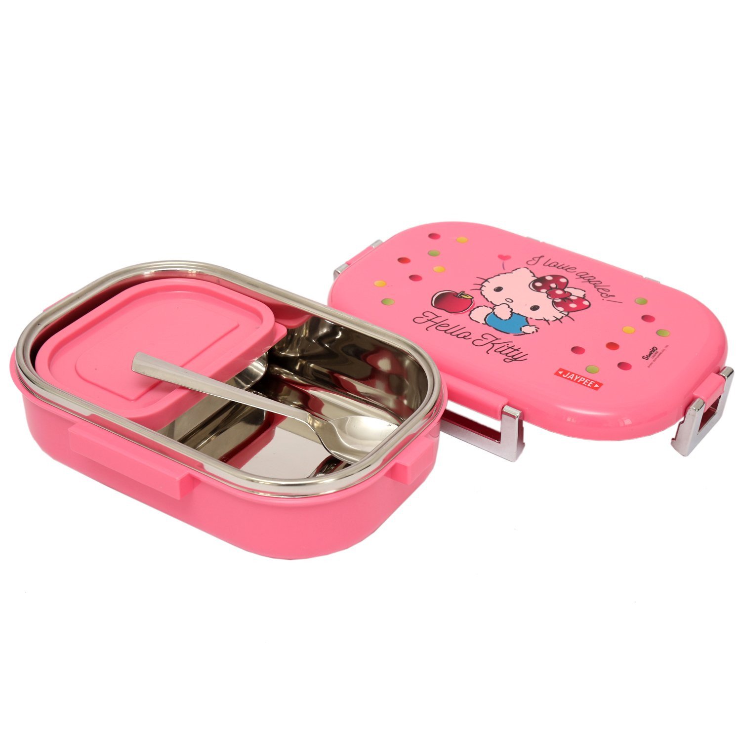 - Insulated lunch box made up of 100 % Food Grade, Virgin Plastic with inner Stainless steel & designed with cartoon characters (Original licensed). Comes with 1 leak proof Stainless steel inside sabzi container & Stainless Steel spoon. Leak proof & spill proof. Compact size- easy fits in your school bag pocket.