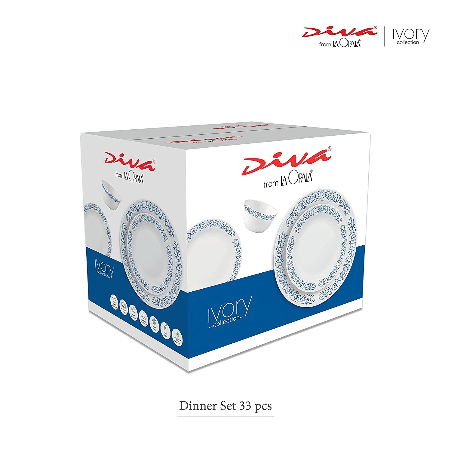 - Package Contents: 6N Full Plate (270 mm), 6N Quarter Plate (190 mm), 6N Veg Bowl (180 ml) , 6N Soup Bowl (340 ml), 6N Spoon, 1N Oval Platter (330 mm), and 2N Serving Bowl (1450 ml)