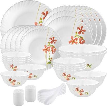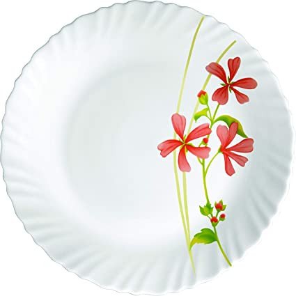 (1pc Round Rice Plate- H-3.0cm, 28.0cm Top Dia, W-480gm, 6pcs Full Plate : H-2.5.0cm, 25.5.0cm Top Dia, W-430gm, 6pcs Quarter Plate : H-1.5cm, 18.0cm Top Dia, W-200gm, 2pcs Serving Bowl : H-6.5cm, 17.5cm Top Dia, W-285gm, 850ml Capacity, 6pcs Soup Bowl : H-5.0cm, 11.5cm Top Dia, W-135gm, 270ml Capacity, 6pcs Veg. Bowl : H-4.3cm, 10.cm Top Dia, W-115gm, 175ml Capacity, 6pcs Soup Spoon : H-1.5cm, L-4.3cm, W-13.3cm, W-50gm, 2pcs Salt & Pepper Pot : H-5.3cm, 4.0cm Round Dia, W-60gm.)