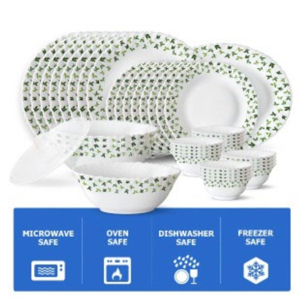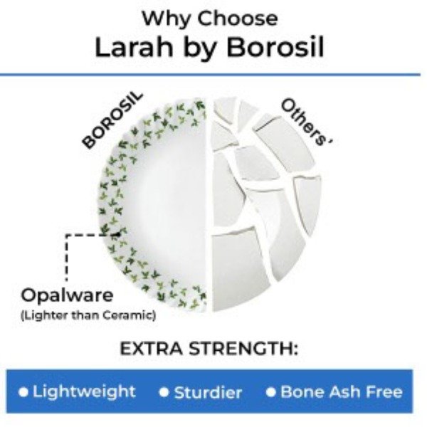 The Larah by BOROSIL Sage 47 Pcs Opalware Dinner Set is ideal for everyday use as well as special occasions. Impress your guests with the elegant design and exquisite craftsmanship of this dinner set. Perfect for gifting to newlyweds, housewarming parties, or simply for upgrading your own dining experience.