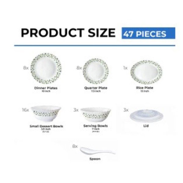 Elevate your dining experience with the Larah by BOROSIL Sage 47 Pcs Opalware Dinner Set and enjoy meals in style.