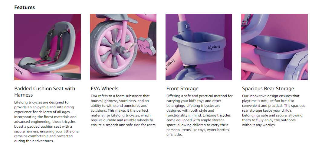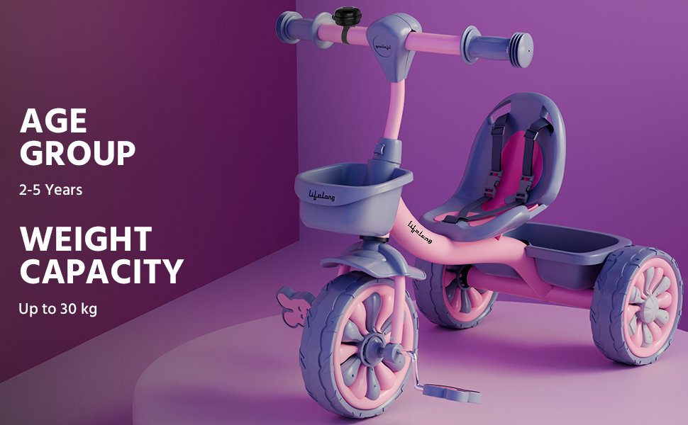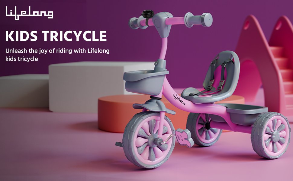 Our kids’ bikes ensuring the utmost safety for infants and toddlers. With Lifelong Tricycles for Kids 2-5 years, we take pride in crafting products that not only provide countless hours of fun but also prioritize your child's comfort besides helping the parents with the easy storage baskets, and back support and the handle fitting knob for the kids.