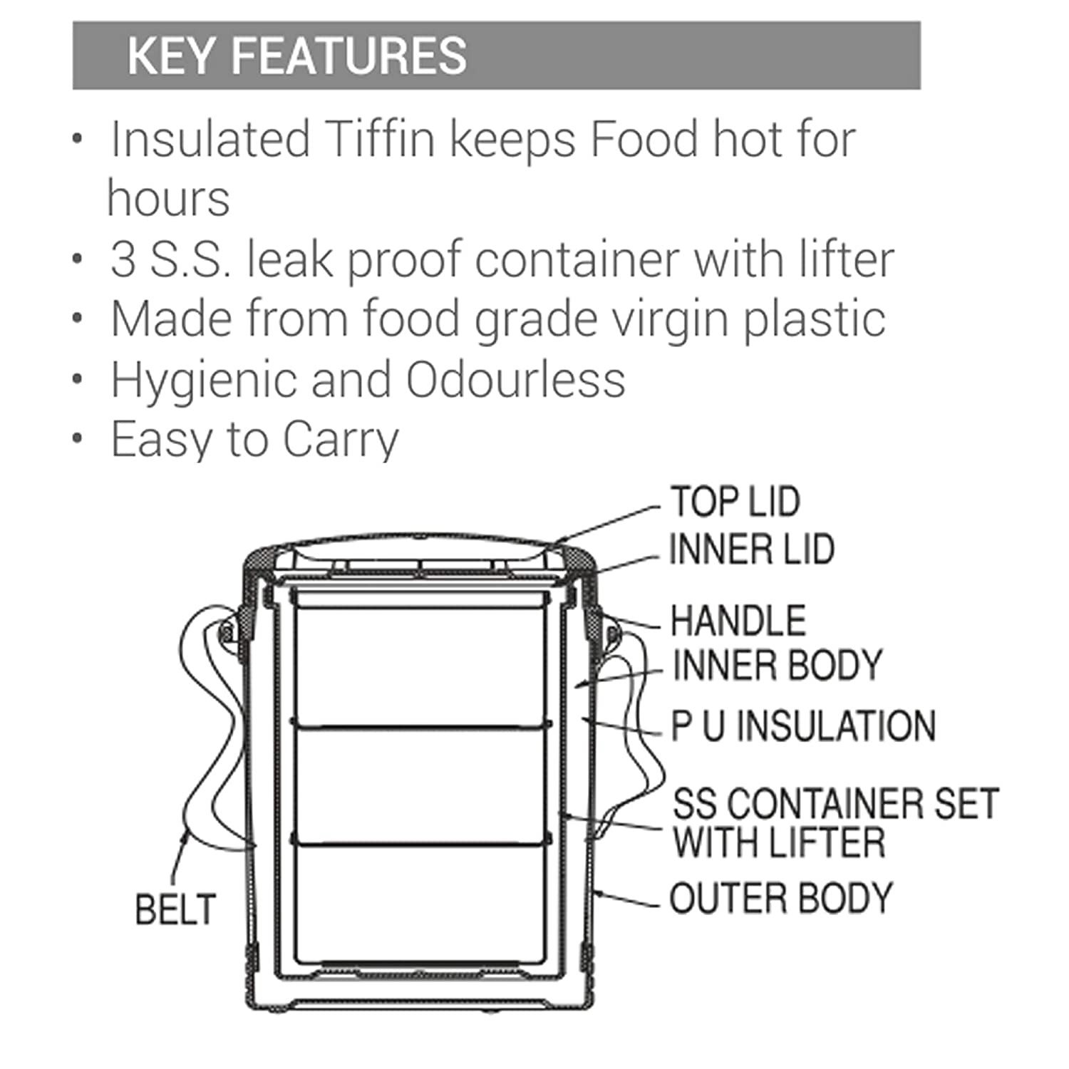 Included Components : Milton Lunch Box for Office Econa Delux 3 Container Hot