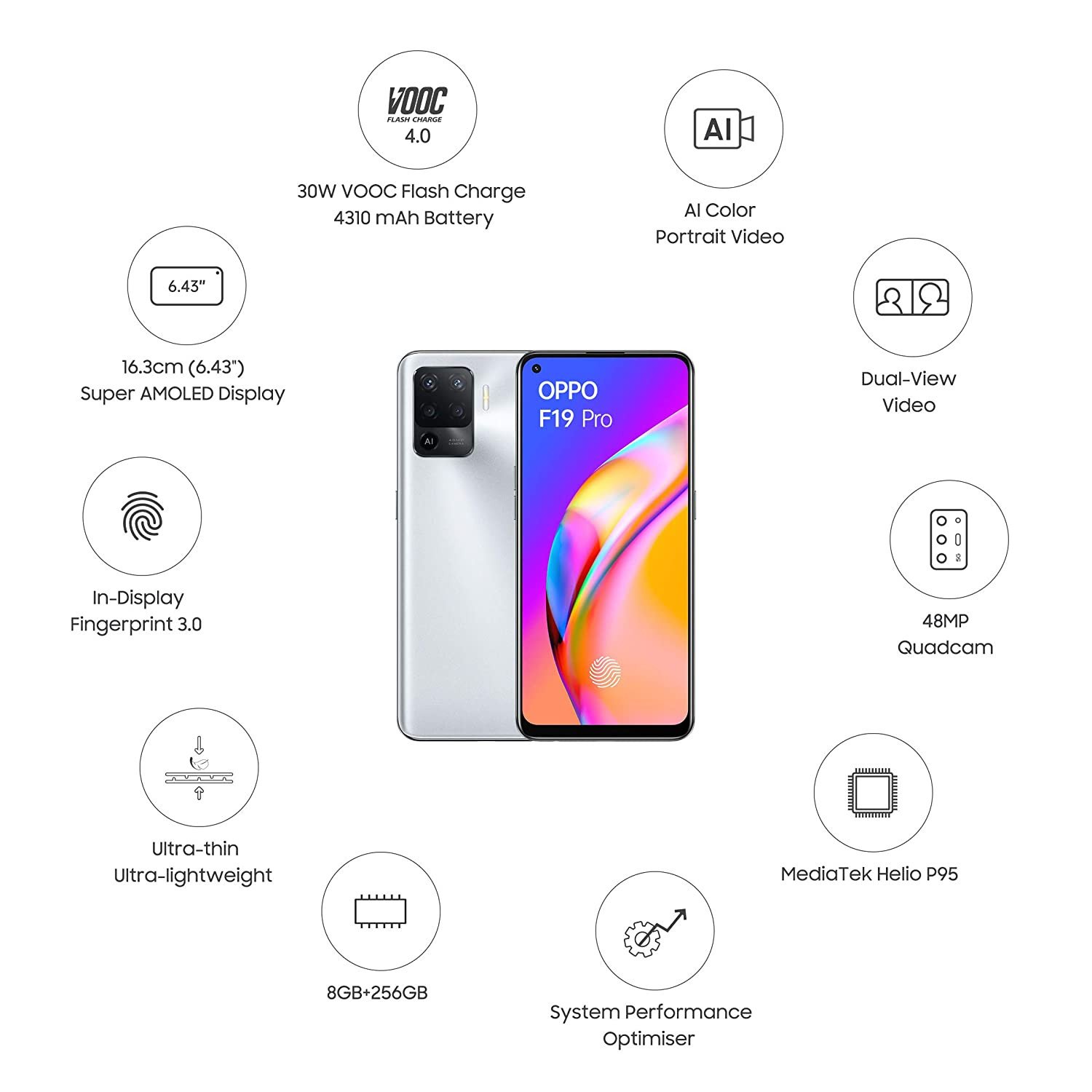 OPPO F19 Pro (Crystal Silver, 8GB RAM, 256GB Storage) with No Cost EMI