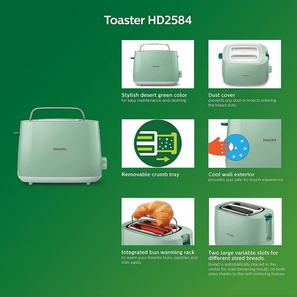 Philips Daily Collection HD2584/60 830-Watt 2-Slice Pop-up Toaster (Desert Green)