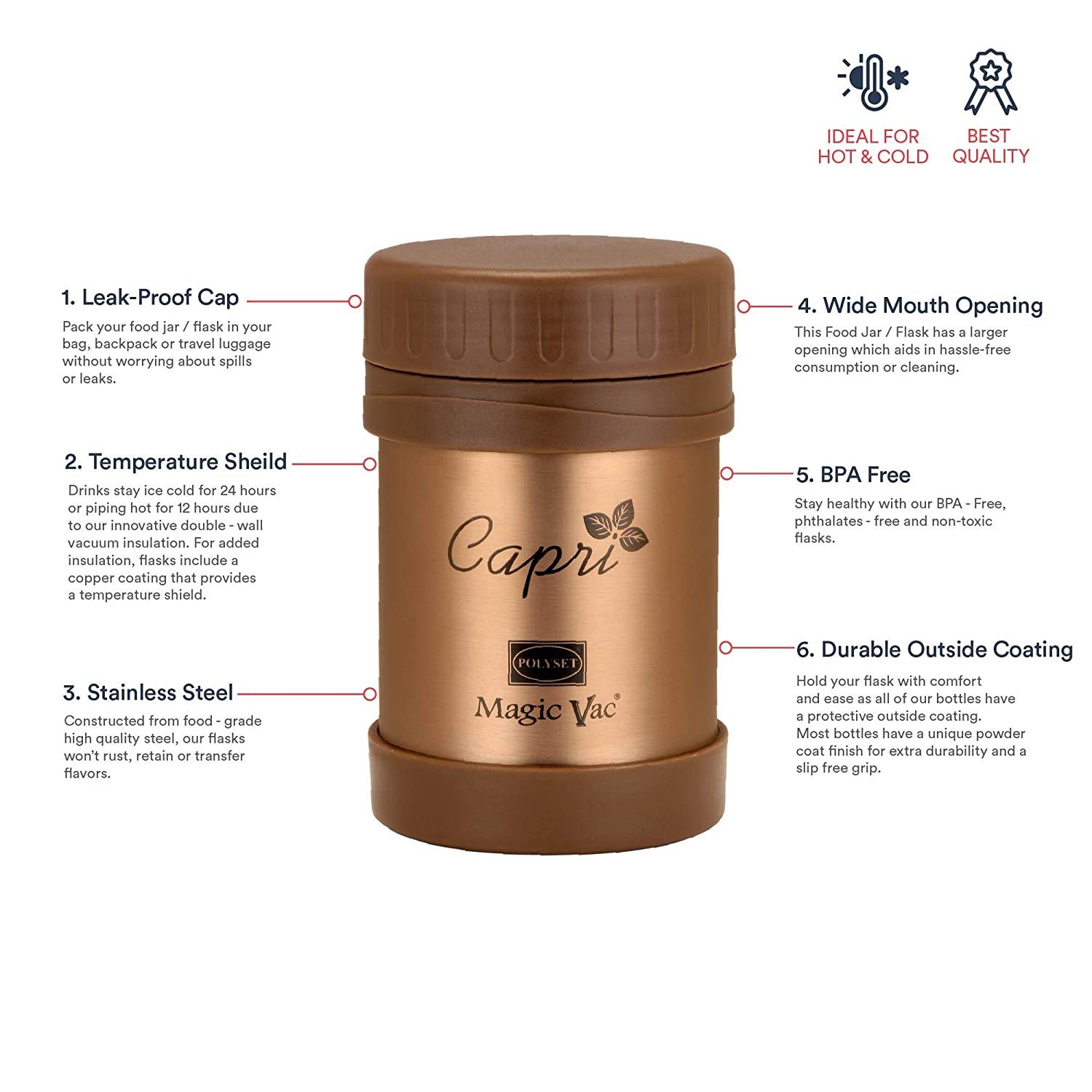 • Suitable for Hot & Cold Beverage , Double Vac Insulated body keeps Beverage Hot/Cold for longer hours