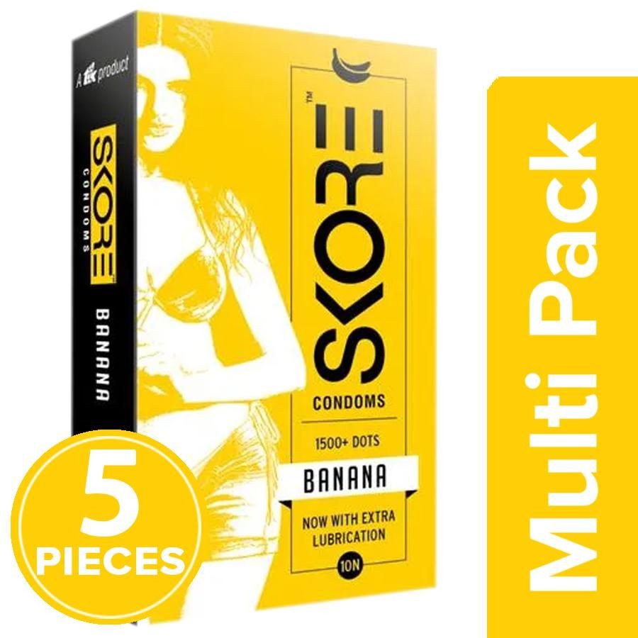 Skore Dotted & Coloured Condoms - Banana Flavoured, 5x10's pack Multipack