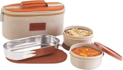 The all new Grace stainless-steel lunch box, containers which keeps your food fresh. A plate on the containers can be used for serving the accompaniments to make your meal tastier. Now enjoy your lunch time with Rishabh Grace Lunch boxes