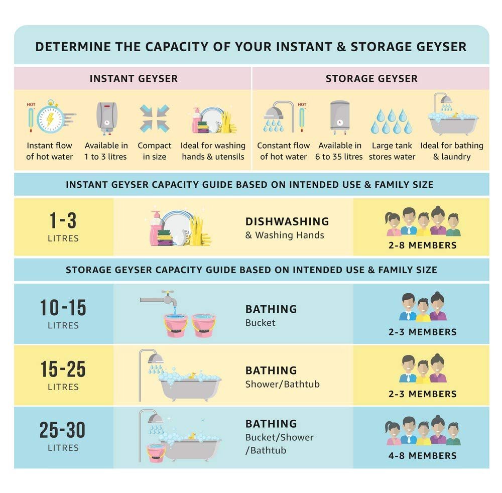 • Usha 3 Litres Instant Water Heater with High Pressure with-standing capacity suitable for high rise buildings