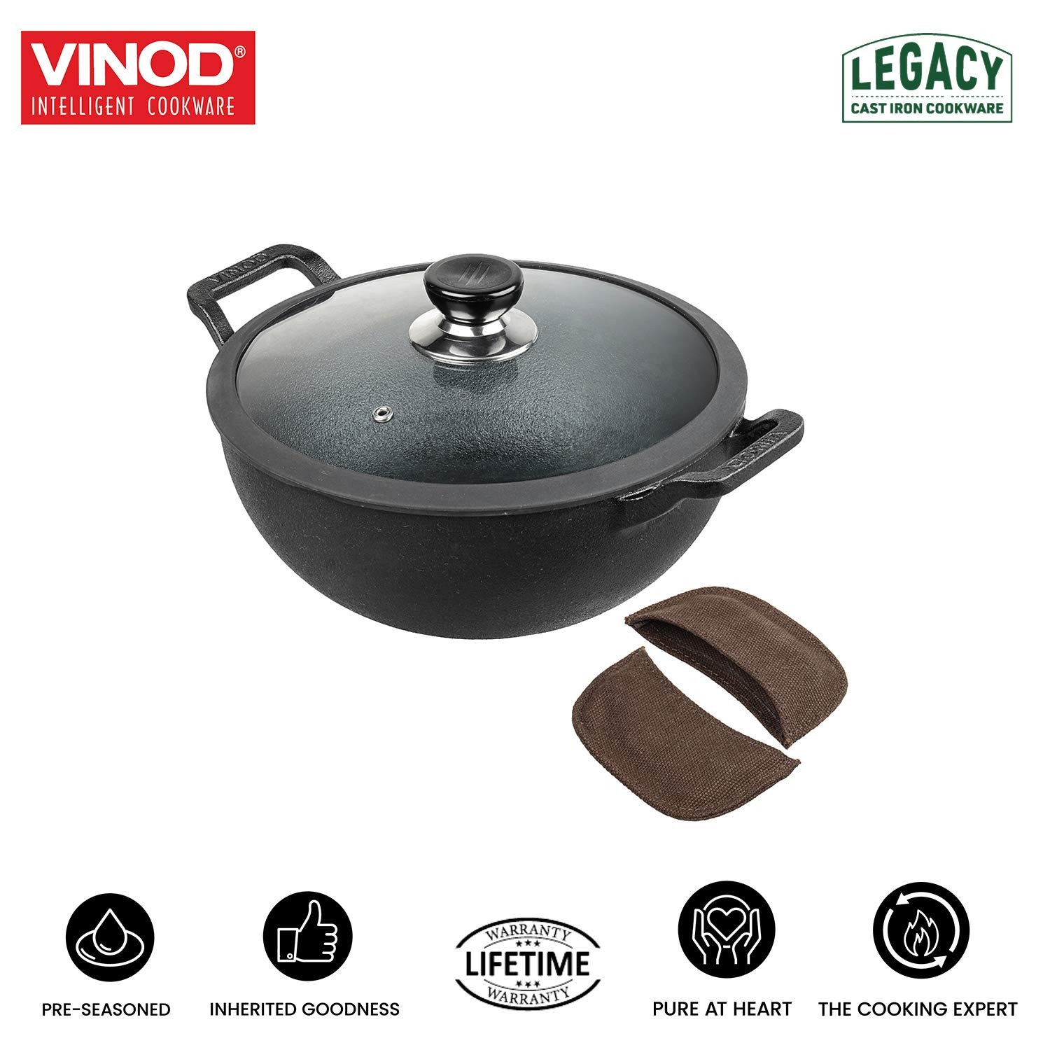 Vinod Legacy Pre-Seasoned Cast Iron Kadai, Induction Friendly