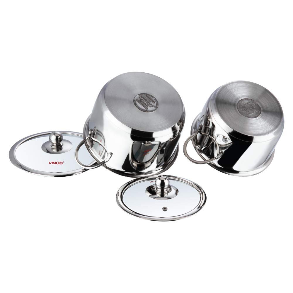 Vinod is a brand of cookware that is known for its quality, and the popularity of their products are a testimony to this fact. The Vinod Cookware Tuscany set is a useful appliance that you can add to existing kitchenware. These Tuscany cooking pots are made from the finest quality stainless steel material that renders immense durability and sturdiness to the appliance. A silver finish adds an element of gloss and shine to your kitchen. These pots are compatible with all types of gas burners including induction ones.