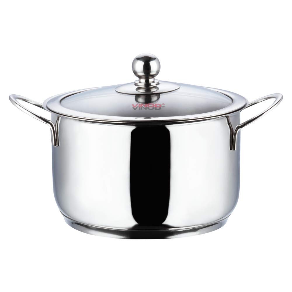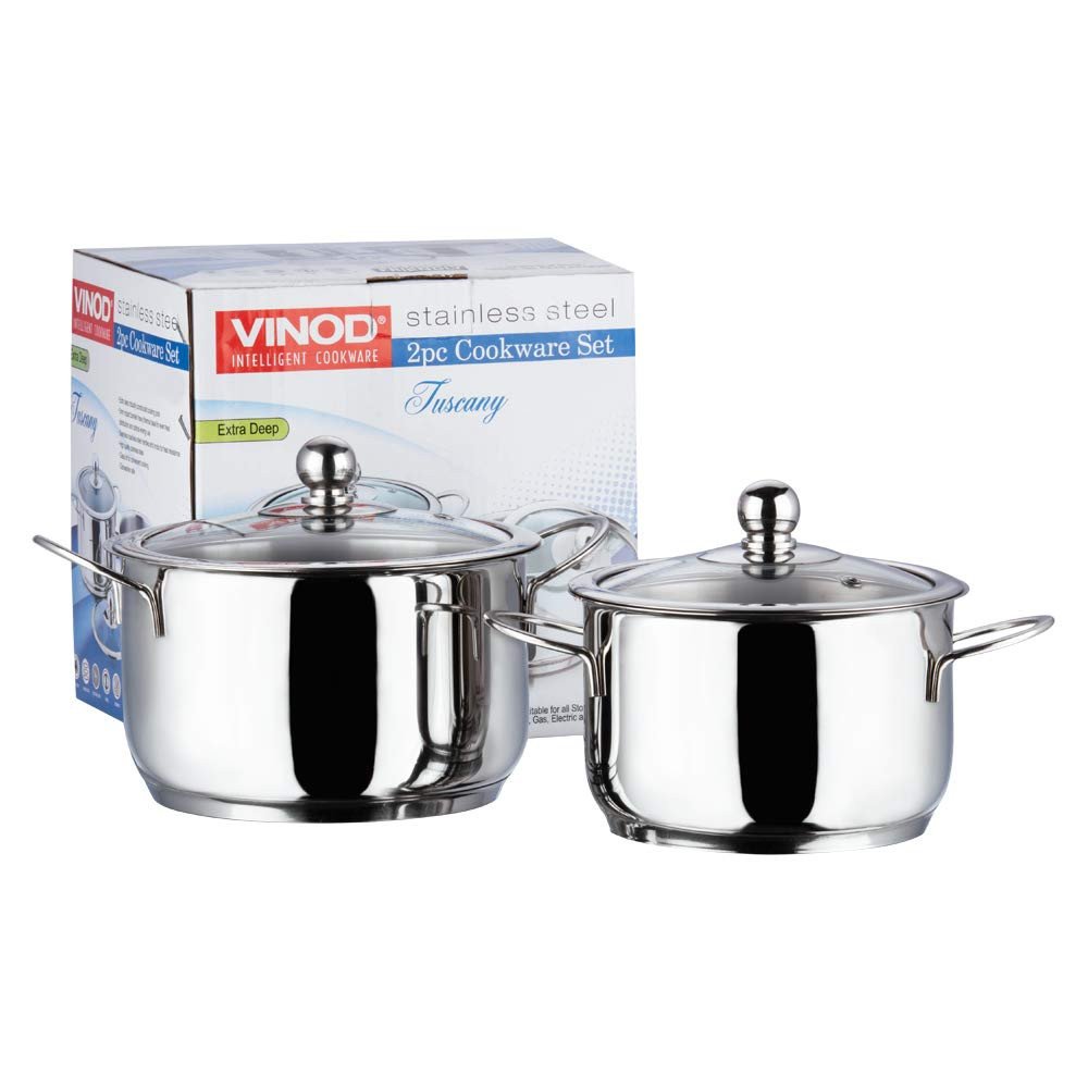 Vinod is a brand of cookware that is known for its quality, and the popularity of their products are a testimony to this fact. The Vinod Cookware Tuscany set is a useful appliance that you can add to existing kitchenware. These Tuscany cooking pots are made from the finest quality stainless steel material that renders immense durability and sturdiness to the appliance. A silver finish adds an element of gloss and shine to your kitchen. These pots are compatible with all types of gas burners including induction ones.