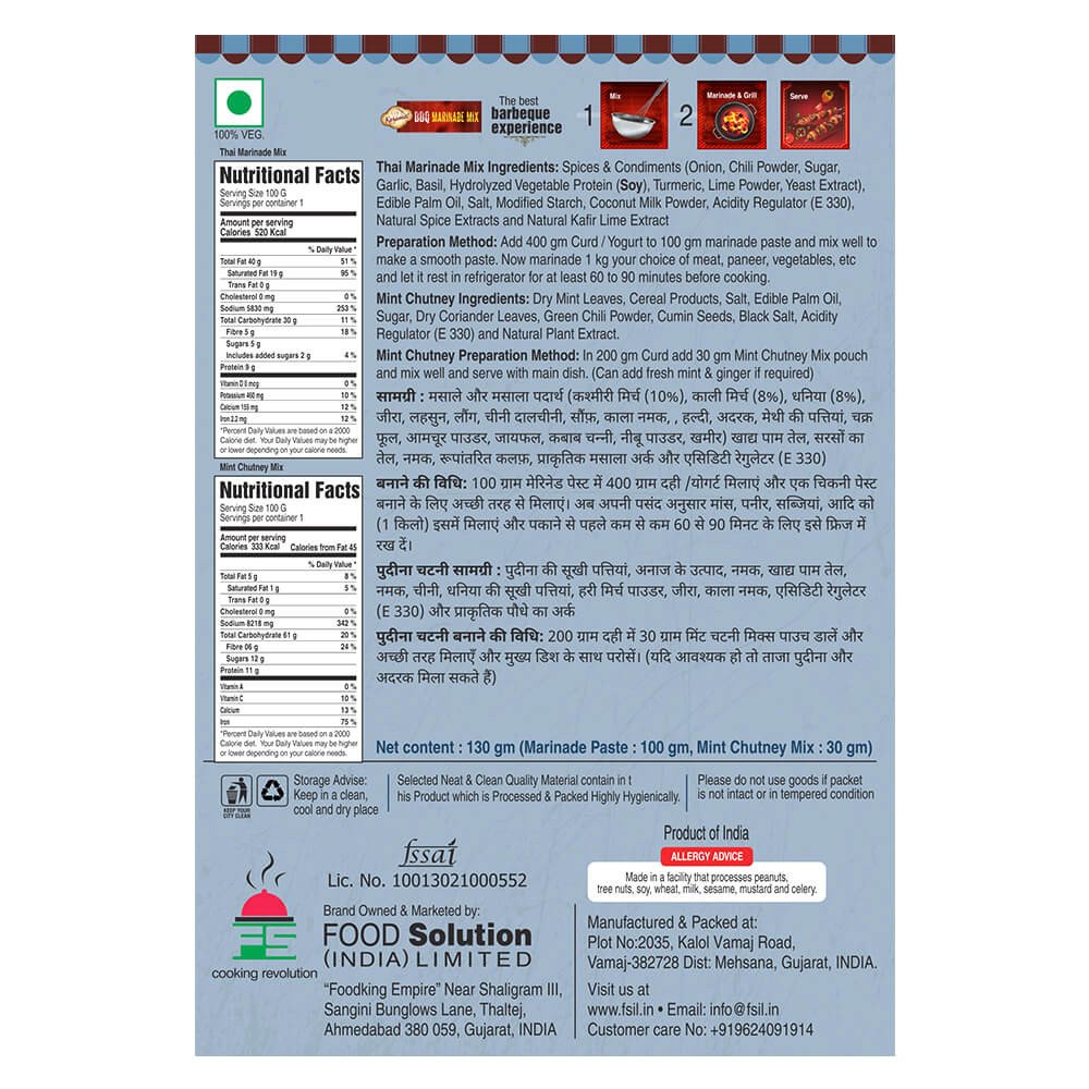 Get the authentic Thai taste at your home with Karamat’s Thai Marinade Meal Kit (MYO). Prepare mouth-watering meat, vegetables or sea food with this marinade. Infused with the flavours of kafir lime, lemon grass, galangal and fresh coconut, it lends the authentic flavour for the perfect Thai preparation. It also includes the Mint Chutney which works perfectly well with the grilled delights.