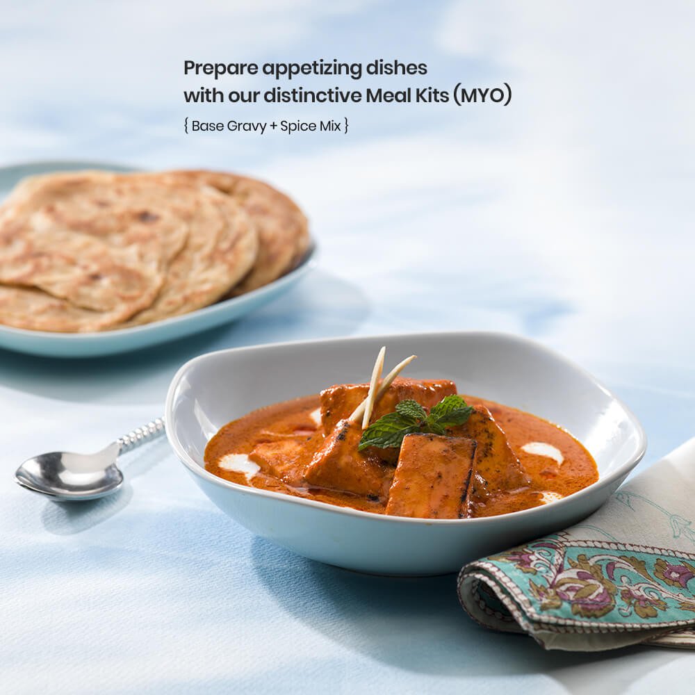 The smooth & creamy Tomato Makhani Gravy is a delight to watch, not just eat. It’s the perfect gravy to create an array of lip-smacking dishes. Karamat’s Tomato Makhani Gravy Meal Kit (MYO) brings with it the authentic taste of tangy tomatoes and aromatic spices. As it can be prepared within minutes, there’s ample time to savour the flavours.