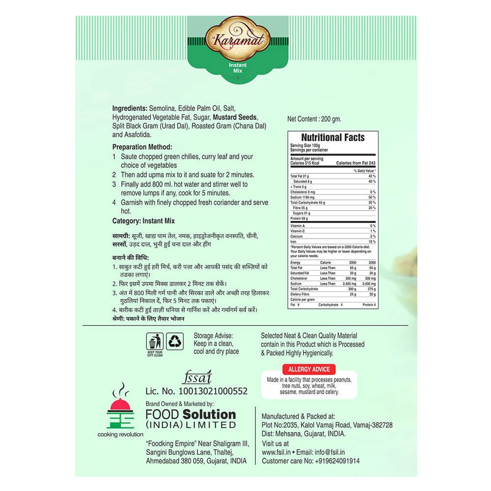 Upma is a tasty snack to be had anytime. It’s full of health benefits and is very easy to make. Karamat’s Upma Mix contains the right amount of suji & seasoning to give you the authentic South Indian flavour. The right ingredients in the right proportions make it easy to make tasty Upma at home within minutes.
