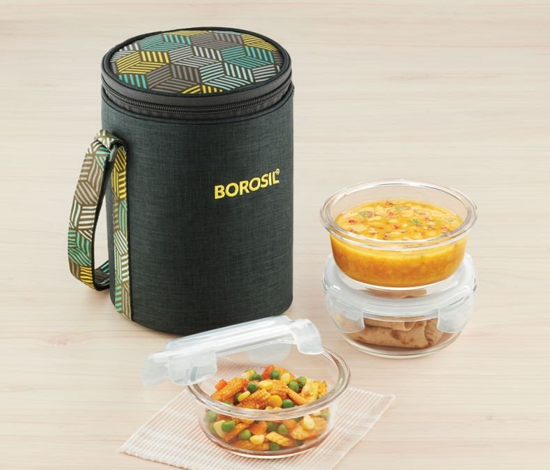 Fresh, tasty and healthy – our Borosil Lunch Boxes ensure that your food looks, tastes and smells just as it did while it was lovingly prepared. Made of the finest borosilicate glass, the leak proof boxes are 100% microwavable, 100% stain proof and leach no chemicals into your food. The high quality fabric carry bags are machine washable. There is no better way to bring home to the office. No plastic - isliye fantastic!