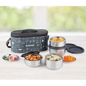 Borosil Carry Fresh Stainless Steel Insulated Lunch Box Set of 4