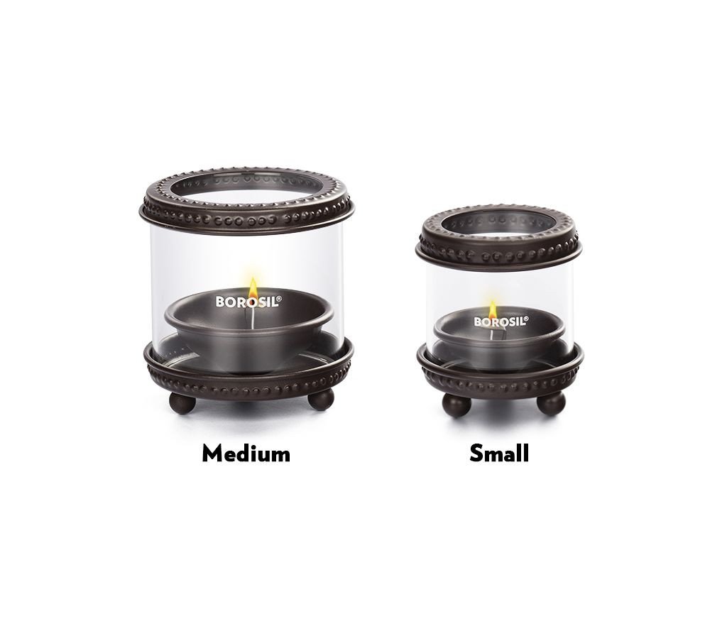 Borosil presents an exciting new range of Diya Lights that are a perfect blend of traditional handicraft with technology. A unique combination of metal with borosilicate glass, each elegantly designed diya is individually handcrafted. The decorative rims adds to the charm of the already beautiful diya.