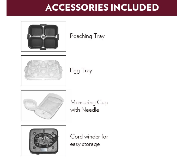 Egg-cellent results every time, that's what our electric cooker delivers. The 8 egg capacity cooker easily cooks enough eggs for weekday breakfasts and weekend family brunches. Choose from three boiling modes, hard, medium, soft for eggs and use a poaching tray to poach eggs or steam your veggies - the options are plenty. It's easy to operate; all you have to do is add the appropriate quantity of water as per your desired mode, put on the lid and wait for a few short minutes. The auto-off function takes the guesswork out of the cooking process as the appliance shuts off once the cooking is done so you're left with perfect eggs, every morning.